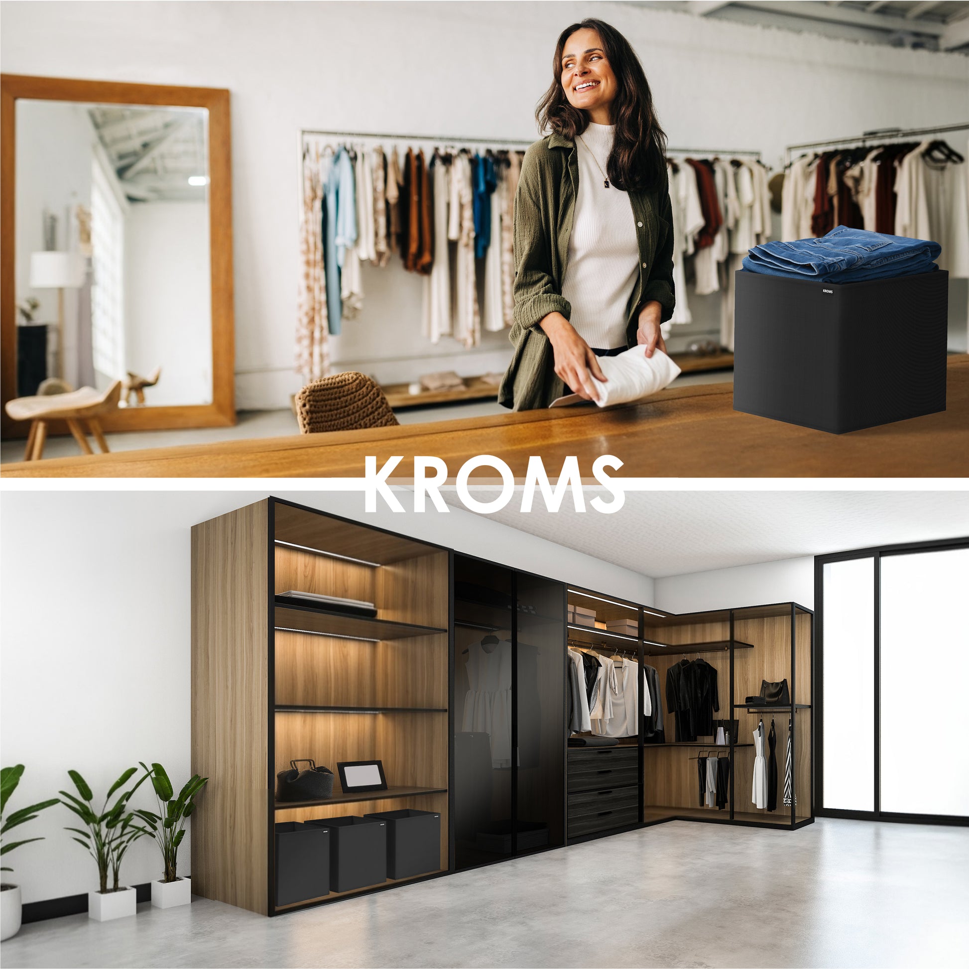 Die größte KROMS Aufbewahrungsbox mit den Maßen 37 x 32 x 32 cm bietet maximalen Stauraum für sperrige Gegenstände wie Wintermäntel, Decken oder dicke Pullover. Ihre robuste Konstruktion und das moderne Design machen sie nicht nur praktisch, sondern auch zu einem stilvollen Blickfang in Ihrem Kleiderschrank oder Abstellraum.