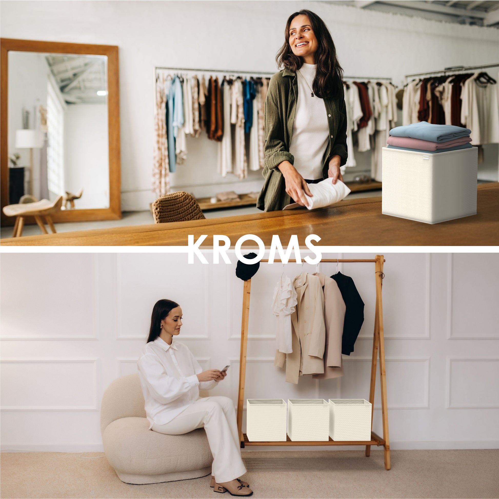Grâce aux spacieuses boîtes de rangement KROMS de 27 x 27 x 28 cm , vous pouvez ranger sans effort des vêtements plus volumineux comme des pulls épais, des gilets ou des pantalons. Elles s'intègrent parfaitement dans les armoires et offrent une profondeur suffisante pour superposer plusieurs couches de vêtements sans les froisser.