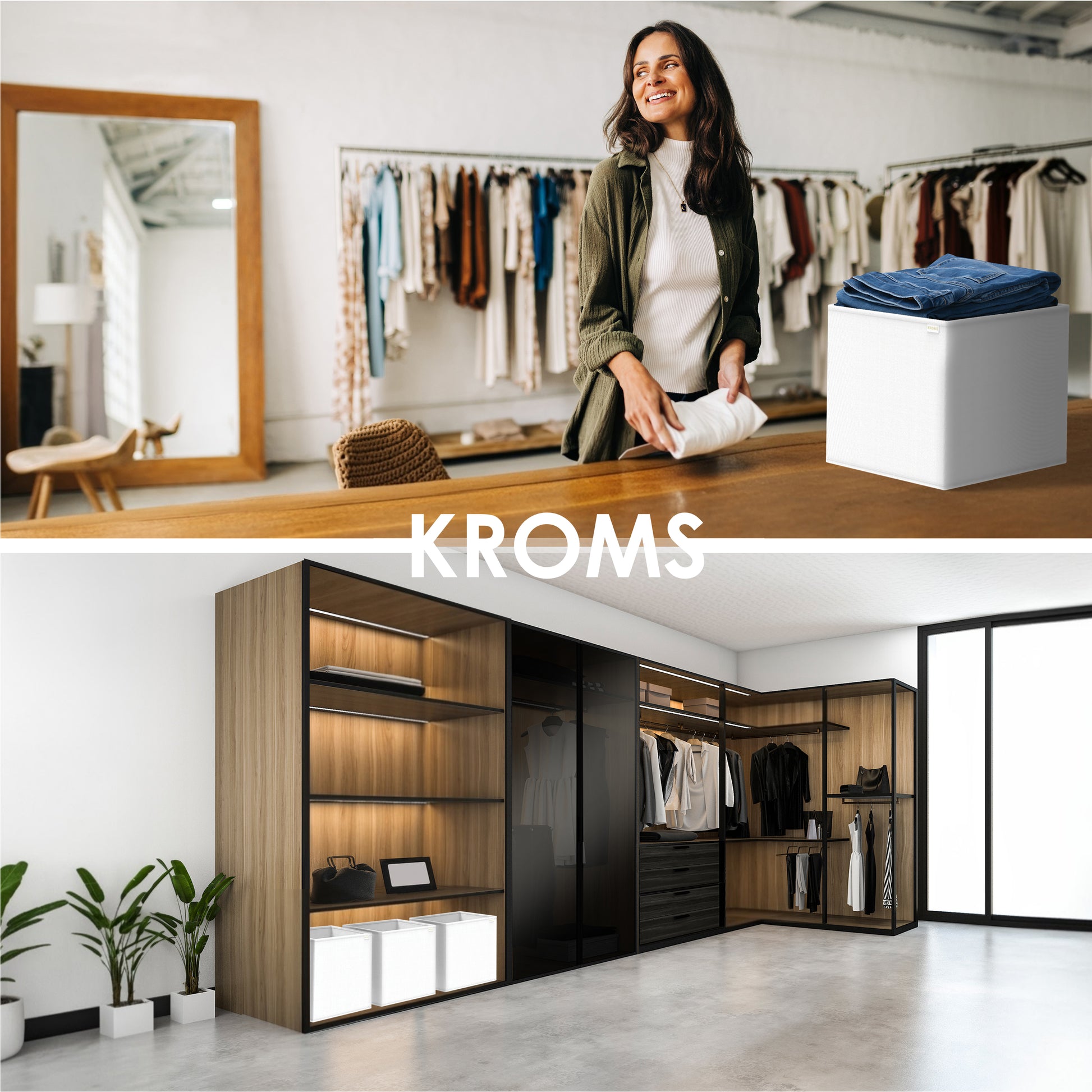 La plus grande boîte de rangement KROMS, mesurant 37 x 32 x 32 cm, offre un espace de rangement maximal pour les articles volumineux comme les manteaux d'hiver, les couvertures ou les gros pulls. Sa construction robuste et sa finition moderne en font un objet à la fois pratique et élégant pour votre dressing ou votre débarras.