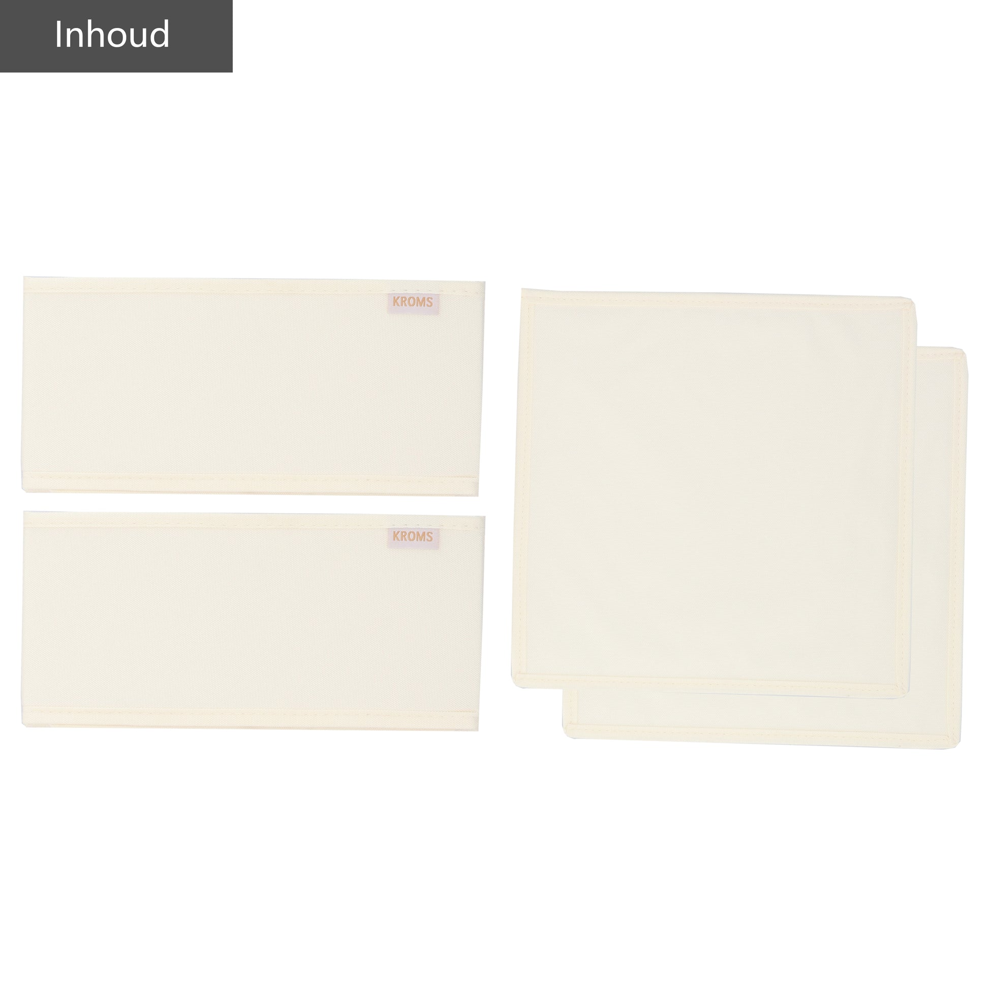 Deze middelgrote KROMS opbergboxen van 28x28x13 cm zijn perfect voor het netjes bewaren van hoodies, truien of vesten. De hoogte is precies goed om kleding plat te leggen zonder dat het kreukt, en de strakke vormgeving past in elke kast.