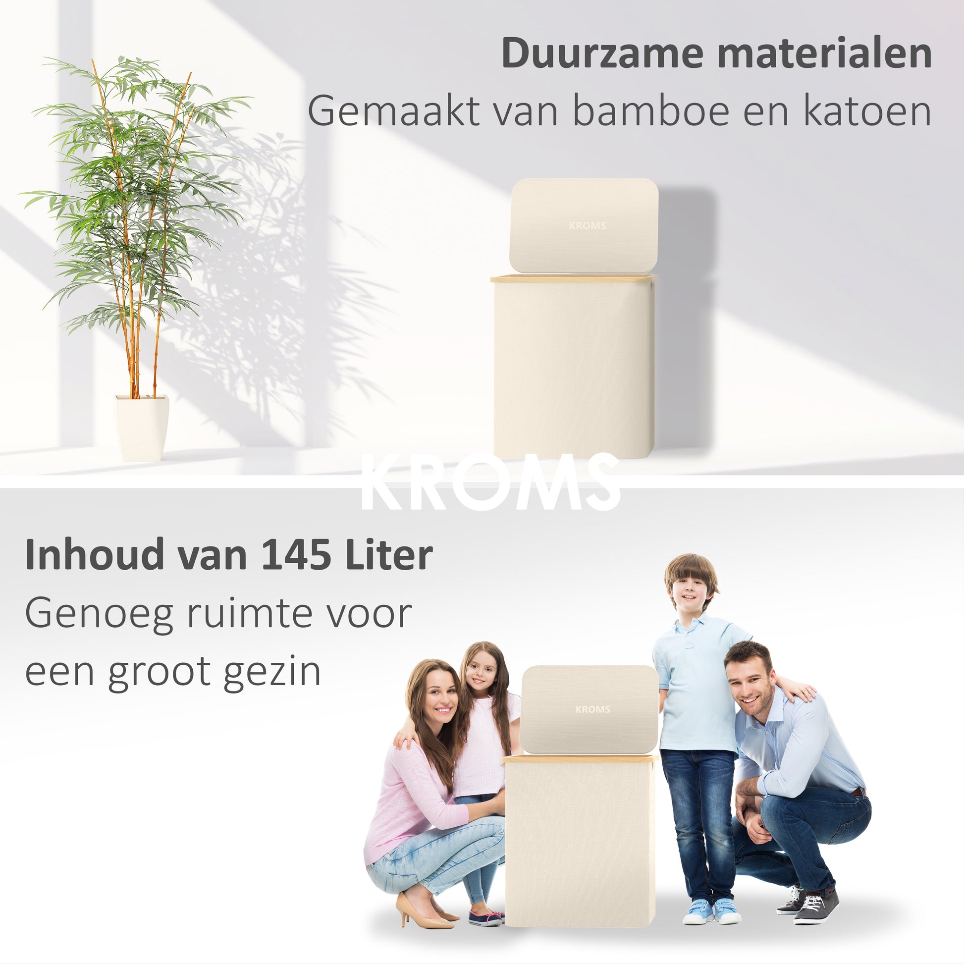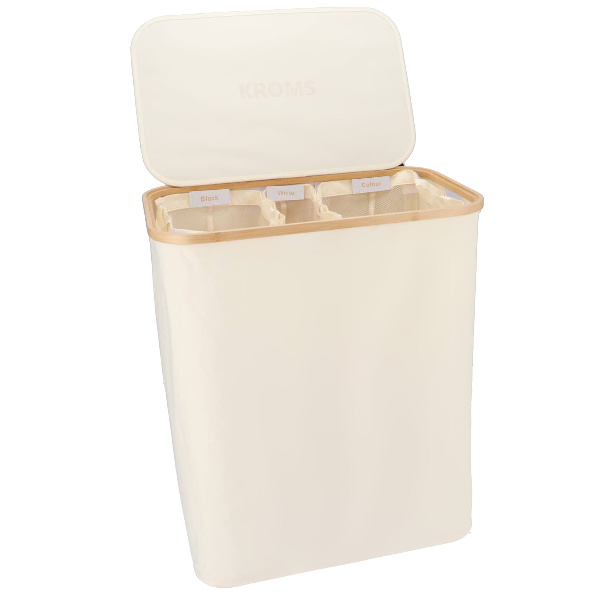Ben jij die ongeorganiseerde wasmand die uitpuilt ook zo zat? Iedere keer weer die wasmand op zijn kop om de was uit te sorteren voordat je een wasje kan draaien. Het blijft altijd weer een gedoe! Daar hebben wij wat voor bedacht; de KROMS wasmand drie vakken bamboe!