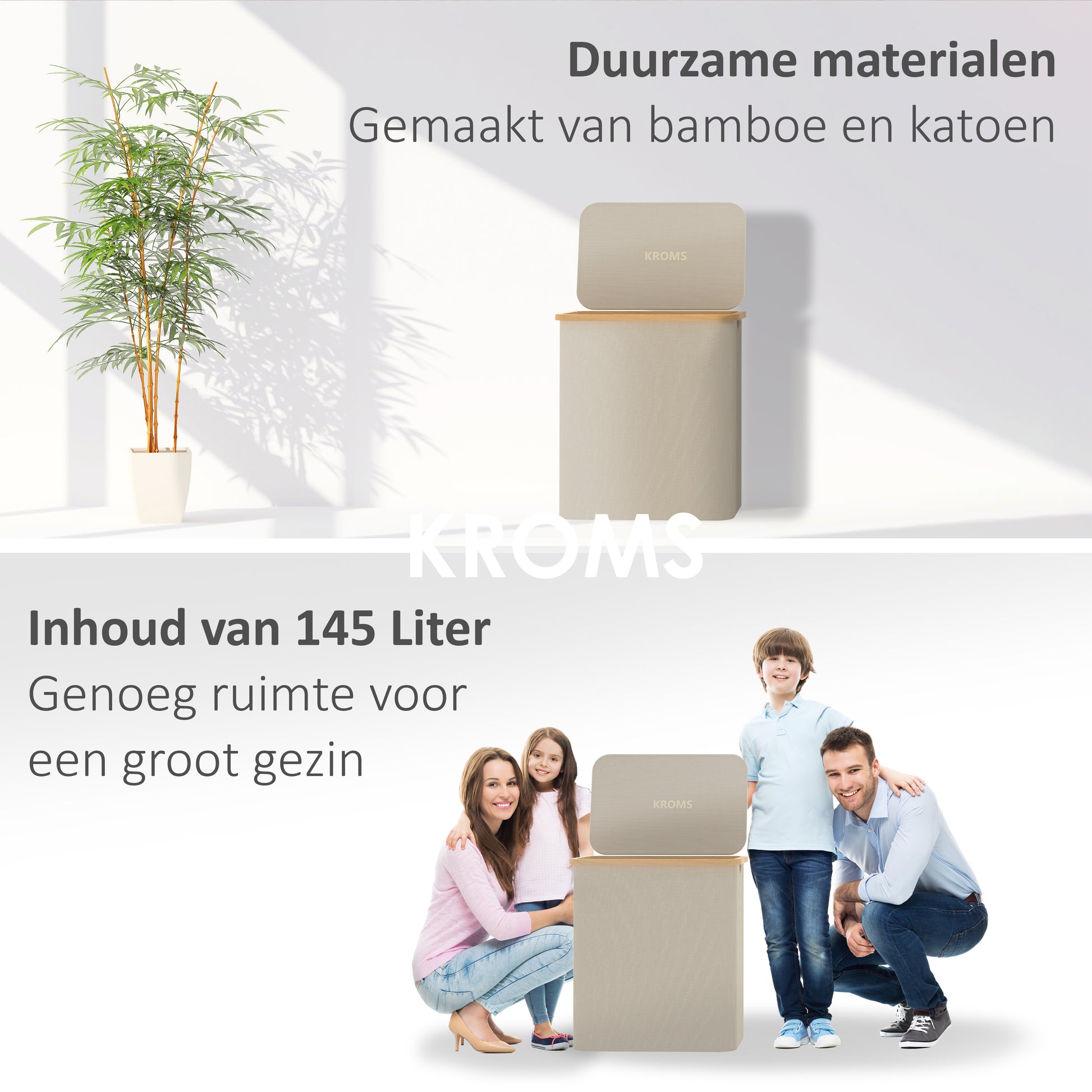 Ben jij die ongeorganiseerde wasmand die uitpuilt ook zo zat? Iedere keer weer die wasmand op zijn kop om de was uit te sorteren voordat je een wasje kan draaien. Het blijft altijd weer een gedoe! Daar hebben wij wat voor bedacht; de KROMS wasmand drie vakken bamboe!
