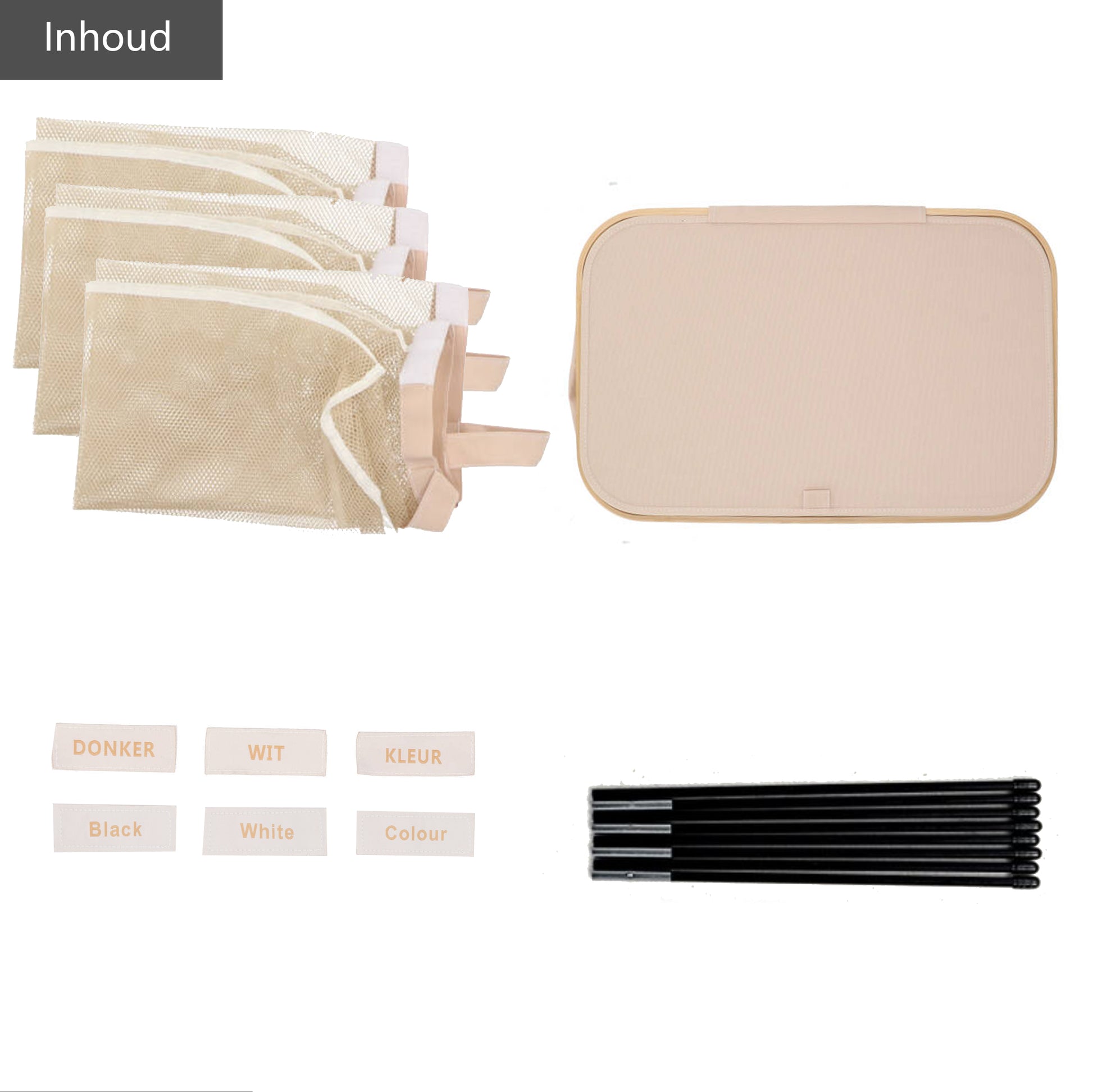 - 3x labels (donker, wit, kleur)