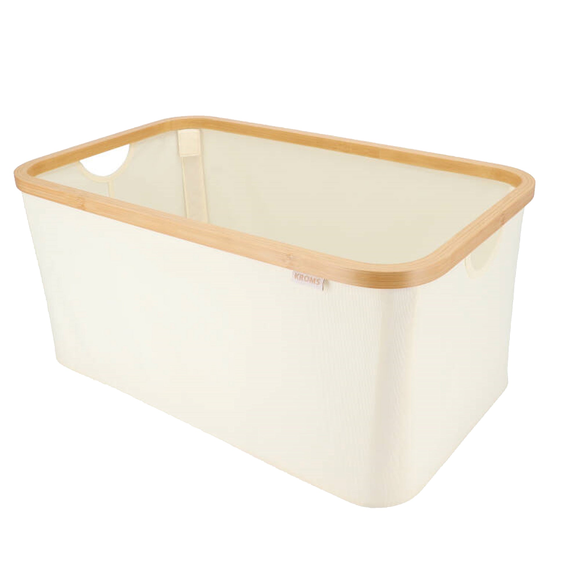 De mand is gemaakt van duurzaam bamboe en sterk katoen. Hierdoor is hij lichtgewicht, maar toch stevig en stabiel in gebruik. De natuurlijke materialen en de warme zand kleur maken dat de mand in iedere ruimte mooi staat. Van wasruimte tot slaapkamer.